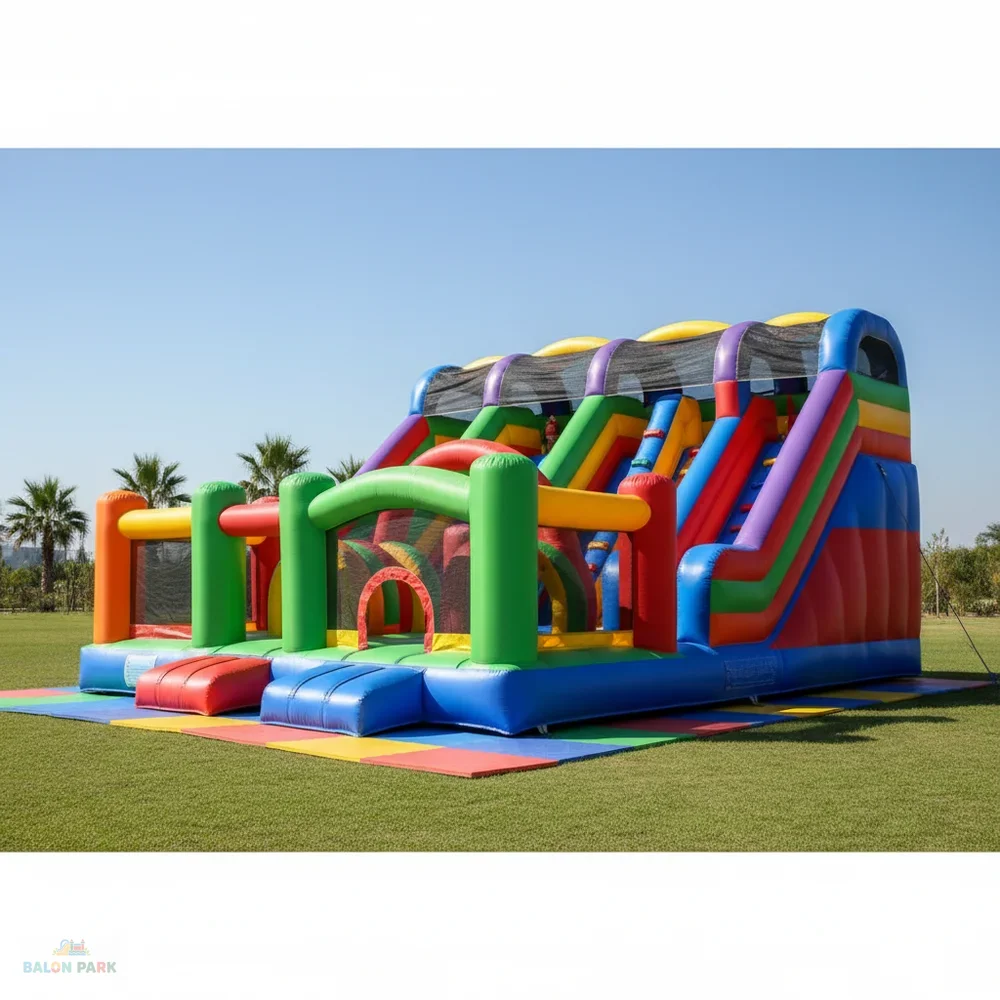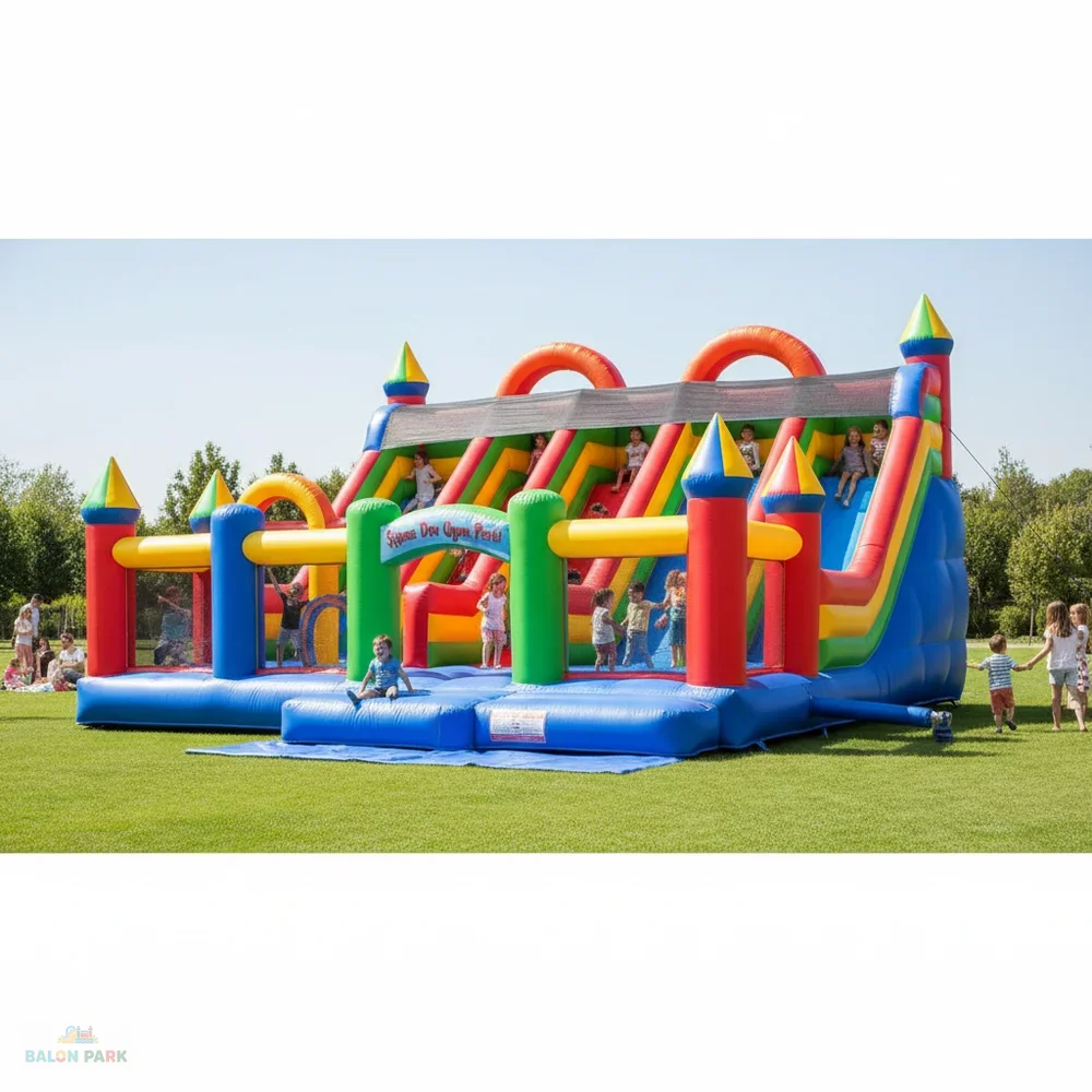 Şişme dev oyun parkı; geniş kapasitesi, sağlam malzeme yapısı ve güvenli tasarımı ile büyük organizasyonlar için ideal bir eğlence çözümüdür. Yüksek dayanıklılığı ve kolay kurulumu sayesinde ticari kullanıma uygundur.