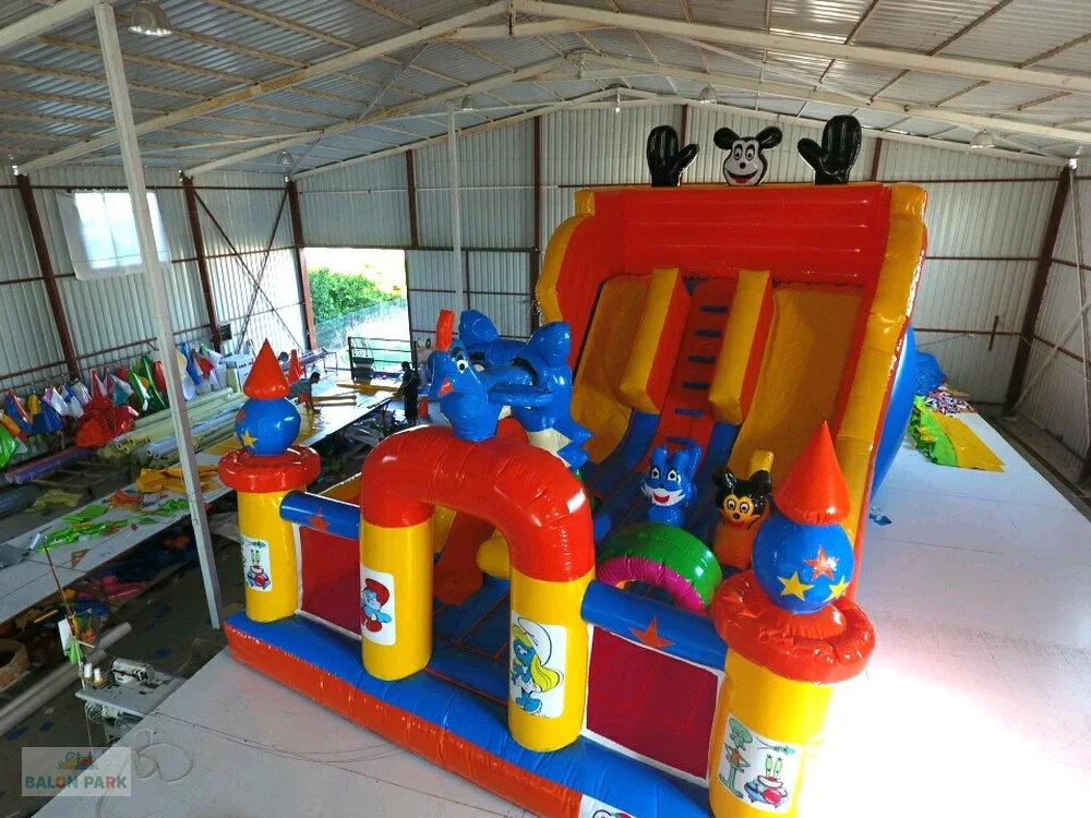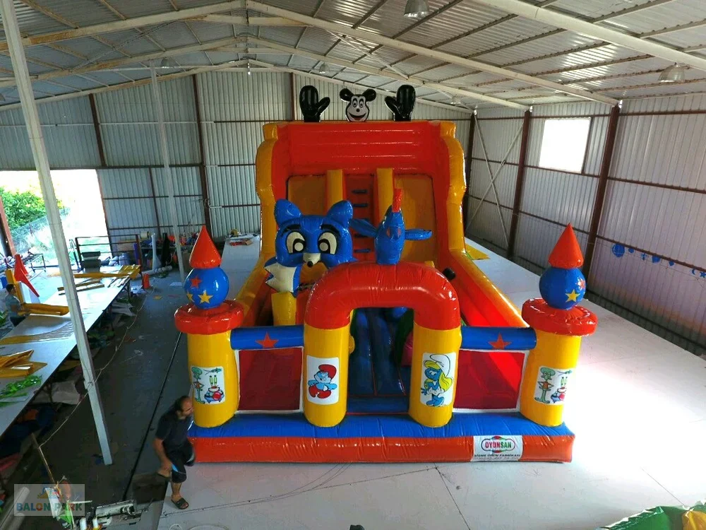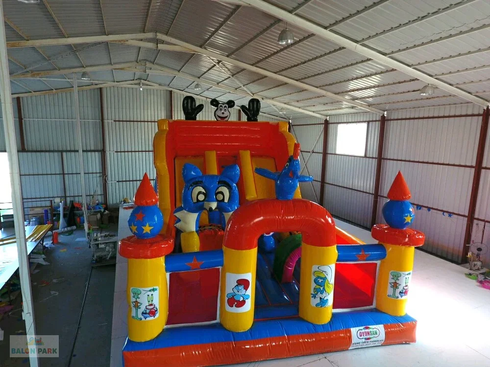 Şişme Mickey Mouse dev oyun parkı, çocukların severek tanıdığı Mickey Mouse temasıyla tasarlanmış geniş ve çok fonksiyonlu bir şişme eğlence alanıdır. Renkli karakter baskıları, büyük kaydırak bölümü, tırmanma alanı ve zıplama platformu ile çocuklara uzun süreli ve enerjik bir oyun deneyimi sunar. Doğum günü organizasyonları, AVM etkinlikleri, okul şenlikleri ve festivaller için ideal bir tercihtir. Yüksek gramajlı PVC branda malzemeden üretilmiş olup güvenlik fileleri, yüksek bariyerleri ve yumuşak zemin yapısı ile maksimum güvenlik sağlar. Hem iç hem dış mekan kullanımına uygundur.