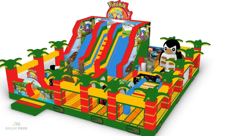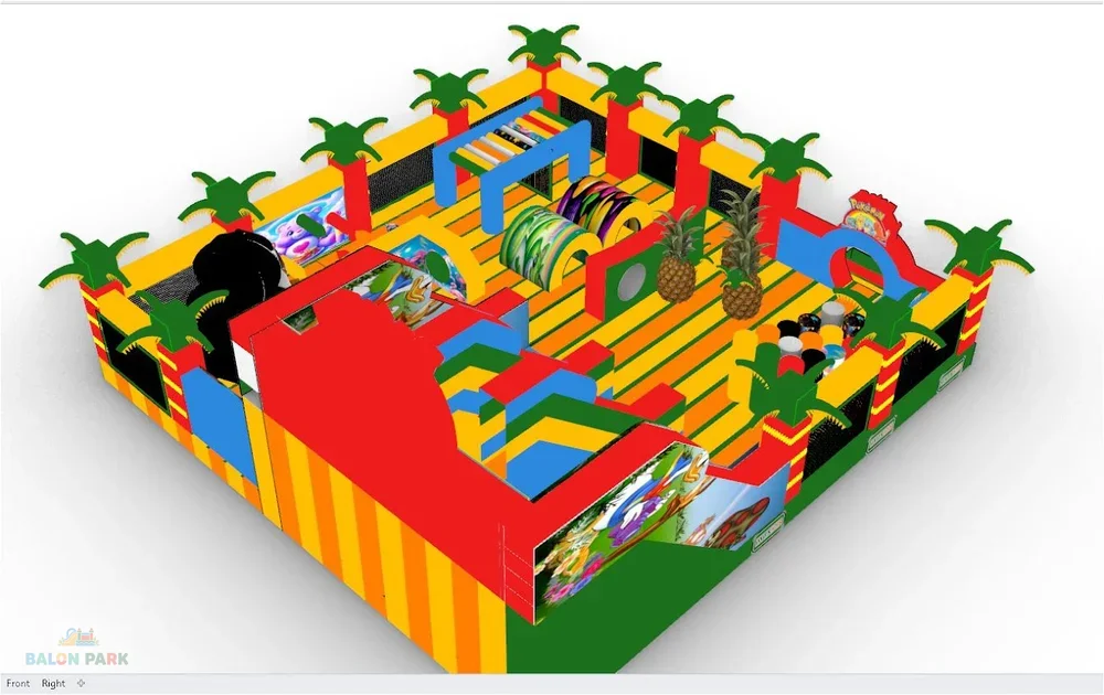 Şişme palmiye temalı oyun parkı; tropikal tasarımı, sağlam malzeme yapısı ve güvenli kullanım özellikleri ile çocuklara eğlenceli bir oyun deneyimi sunar. Organizasyonlar ve kiralama firmaları için dikkat çekici ve pratik bir eğlence çözümüdür.