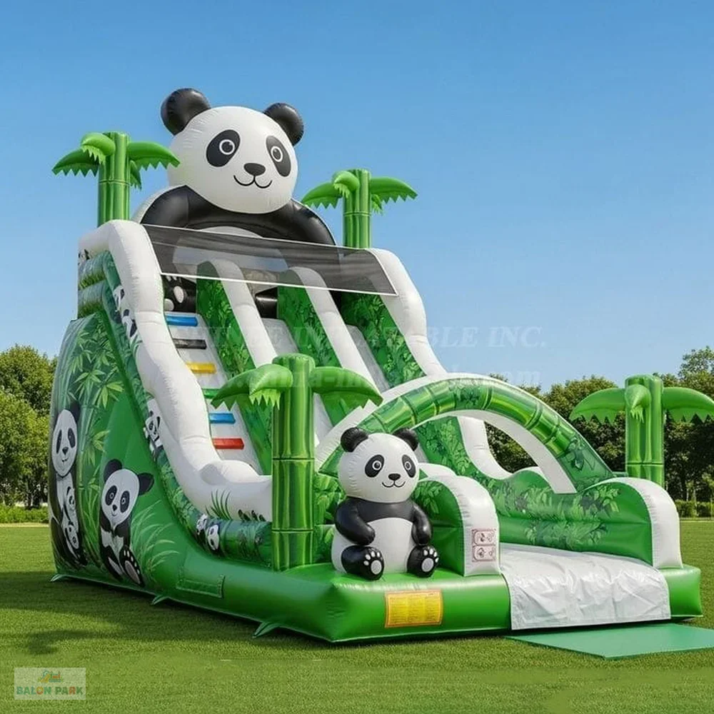 Şişme panda temalı kaydırak; estetik tasarımı, sağlam üretim yapısı ve güvenli kullanım özellikleri ile çocuklara enerjik ve keyifli bir oyun deneyimi sunar. Organizasyon firmaları ve kiralama hizmeti sunan işletmeler için dikkat çekici ve kazançlı bir yatırım ürünüdür. Dayanıklı yapısı sayesinde yoğun kullanıma uygundur.