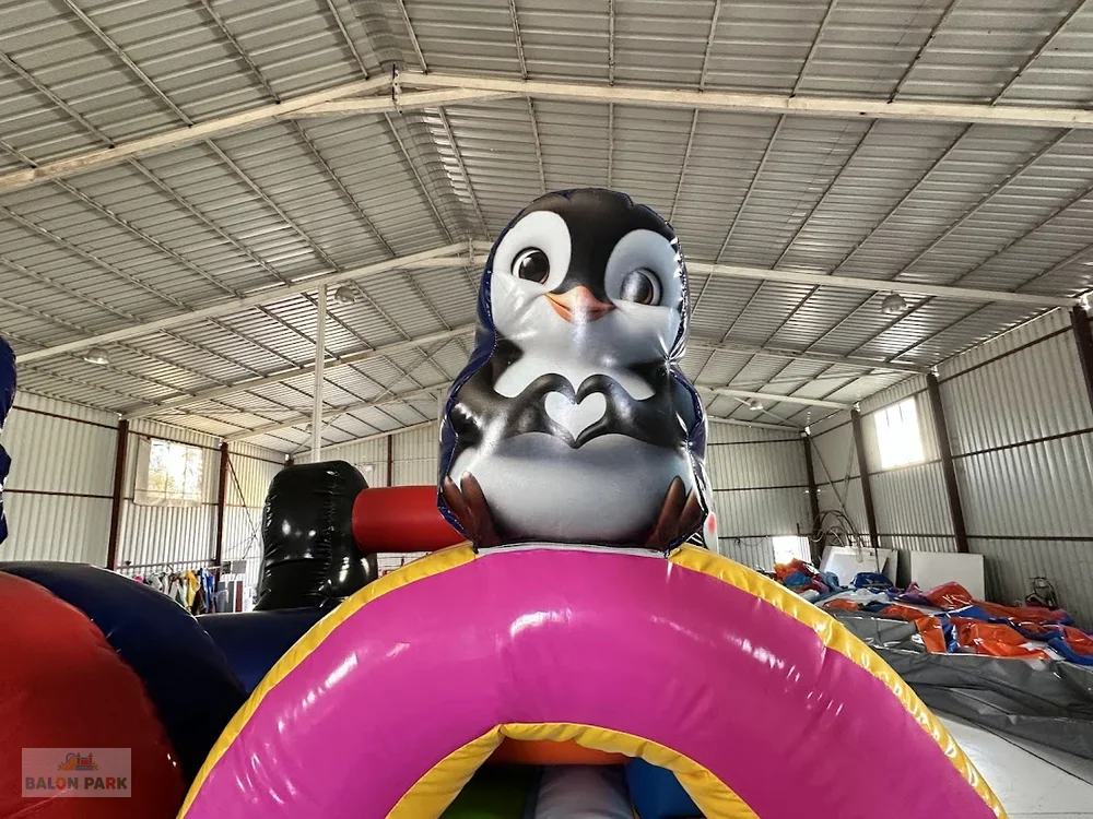 Şişme penguen havuz oyunu; sevimli tasarımı, sağlam yapısı ve güvenli kullanım özellikleri ile çocuklara keyifli bir su ve oyun deneyimi sunar. Organizasyon ve kiralama firmaları için dikkat çekici ve pratik bir eğlence çözümüdür.