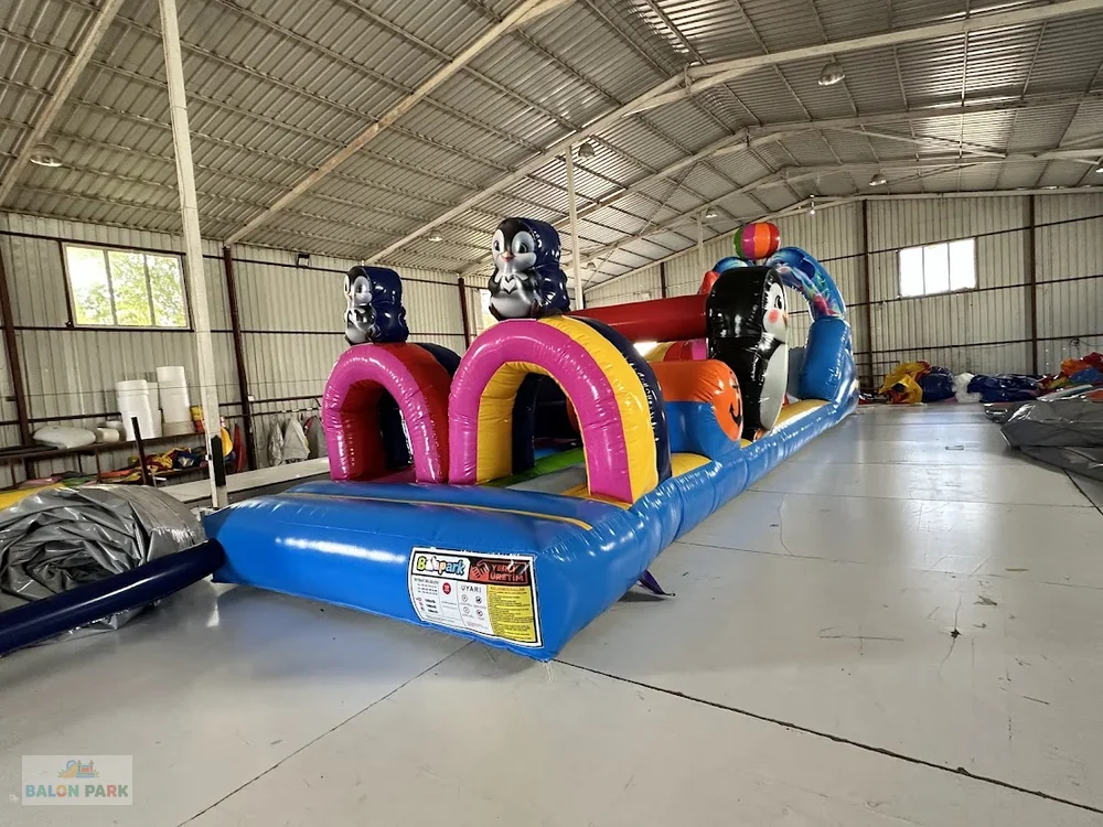 Şişme penguen havuz oyunu, sevimli penguen figürleri ve canlı renkleri ile tasarlanmış eğlenceli bir çocuk su oyun alanıdır. Su temalı detayları sayesinde yaz etkinliklerinde ve organizasyonlarda dikkat çeker. Geniş ve güvenli havuz alanı, çocukların enerjilerini güvenli şekilde atmalarına imkân tanır. Yüksek kaliteli PVC branda malzeme ve çift dikişli güçlendirilmiş yapısı ile uzun ömürlü kullanım sağlar. Yumuşak ve darbe emici şişme yapısı, düşme ve çarpma riskini minimuma indirir. Doğum günü partileri, okul etkinlikleri, yaz festivalleri ve açık hava aktiviteleri için ideal bir tercihtir. Kolay kurulum ve taşınabilir yapısı sayesinde hem bireysel hem de ticari kullanıma uygundur.