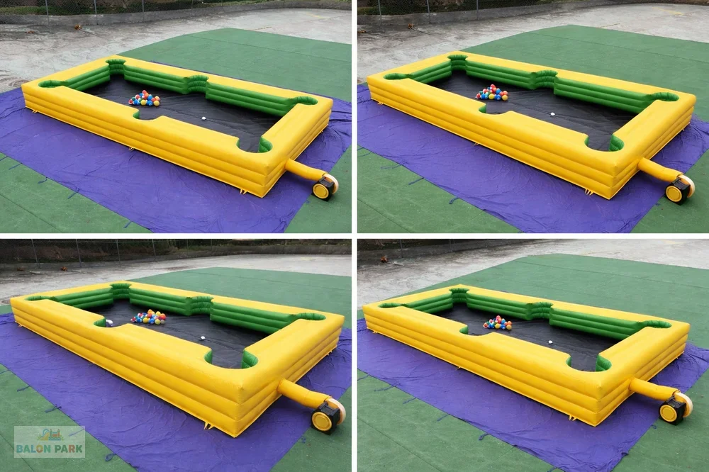 Şişme ayak bilardosu, çocuklar ve yetişkinler için tasarlanmış interaktif ve eğlenceli bir spor aktivitesidir. Normal bilardo oyununun kurallarıyla oynanır, ancak toplar yerine dev top ve oyuncuların ayakları kullanılır. Dayanıklı PVC branda ve şişme bariyerler sayesinde maksimum güvenlik sağlanır. Büyük boyutu ve renkli tasarımıyla etkinlikler, parklar, doğum günü partileri ve eğlence alanları için ideal bir oyun deneyimi sunar. Elektrikli hava pompası ile hızlı kurulum imkânı vardır ve taşınabilir yapısı sayesinde farklı mekanlara kolayca taşınabilir.