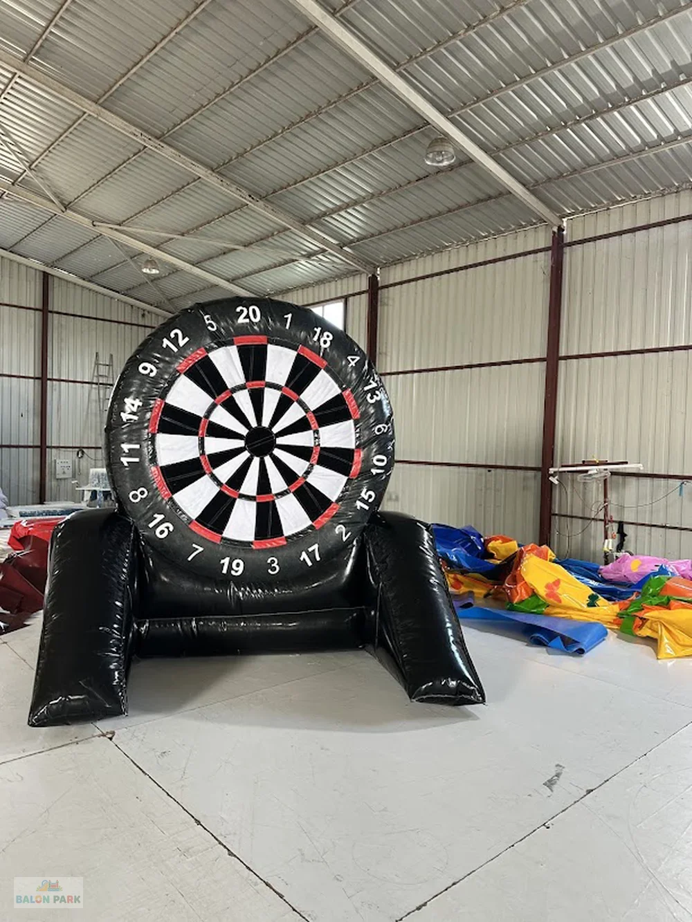 Şişme dev ayak dartı; dev dart tahtası ve yumuşak toplarla oynanan eğlenceli ve güvenli bir aktivitedir. Çocuklar ve yetişkinler için partiler, etkinlikler ve oyun alanlarında interaktif ve unutulmaz bir deneyim sunar.