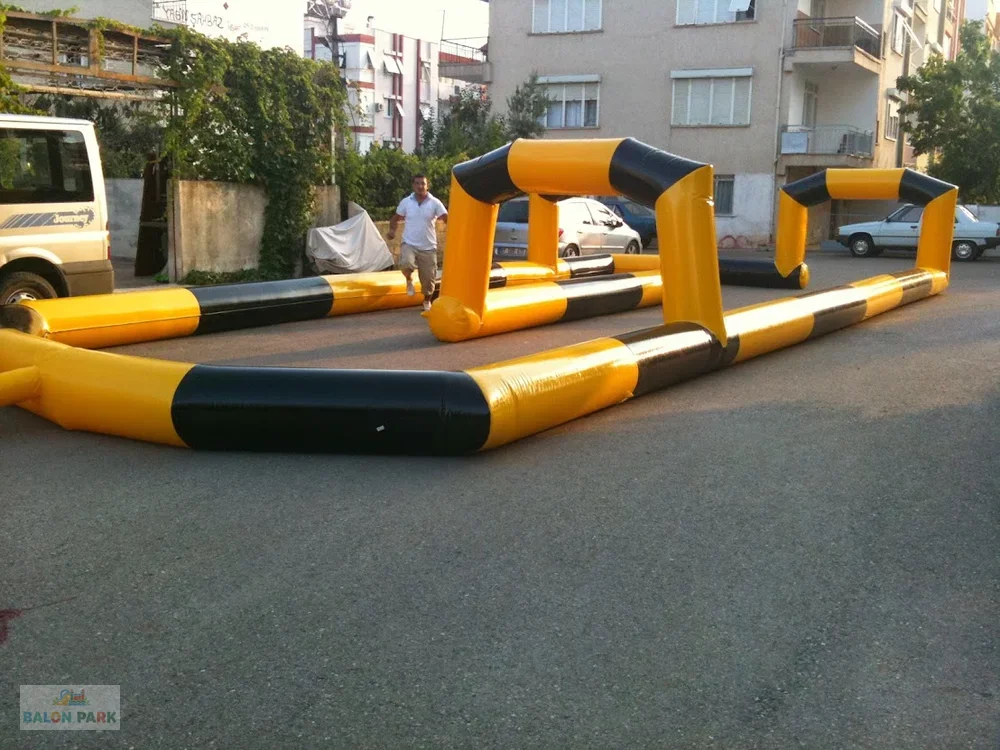 12x6 metre ölçülerindeki şişme yarış pisti, çocuklar ve yetişkinler için tasarlanmış profesyonel bir engelli parkur oyun alanıdır. İki veya daha fazla katılımcının aynı anda yarışmasına imkan tanıyan parkur sistemi sayesinde etkinliklerde yüksek heyecan ve rekabet ortamı oluşturur. Festival, belediye organizasyonları, okul şenlikleri, AVM etkinlikleri ve kiralama firmaları için ideal bir şişme oyun ürünüdür. Dayanıklı PVC branda malzemeden üretilmiş olup yoğun kullanıma uygundur. Güçlendirilmiş dikiş sistemi, güvenli yan duvar korumaları ve darbe emici şişme zemin ile maksimum güvenlik sağlar. Hem iç hem dış mekan kullanımına uygundur ve hızlı kurulum avantajı ile işletmelere pratik çözüm sunar.