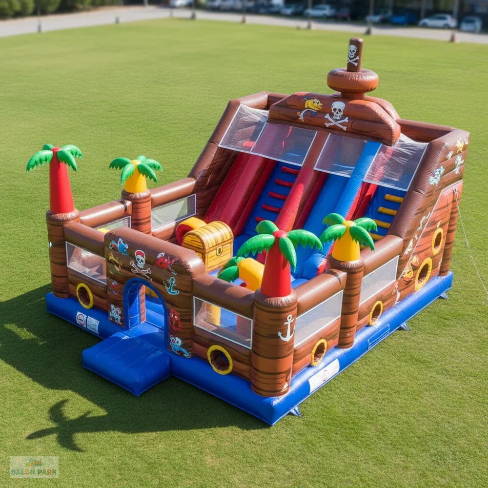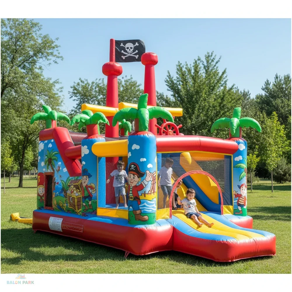 Korsan temalı zıpzıp; macera konsepti, canlı baskıları ve dayanıklı yapısı ile çocuk organizasyonlarının gözdesidir. Güvenlik fileleri, sağlam PVC branda kumaşı ve hızlı kurulum sistemi sayesinde hem güvenli hem de kazançlı bir yatırım ürünüdür. Açık ve kapalı alan etkinliklerinde yüksek ilgi çeker.