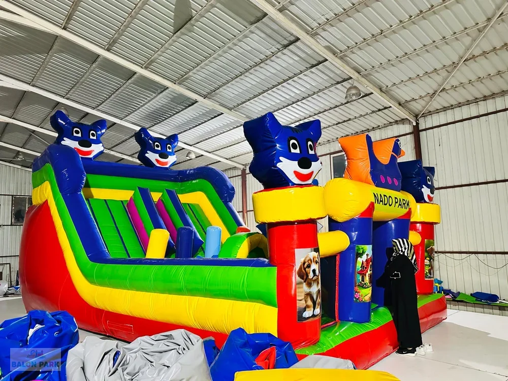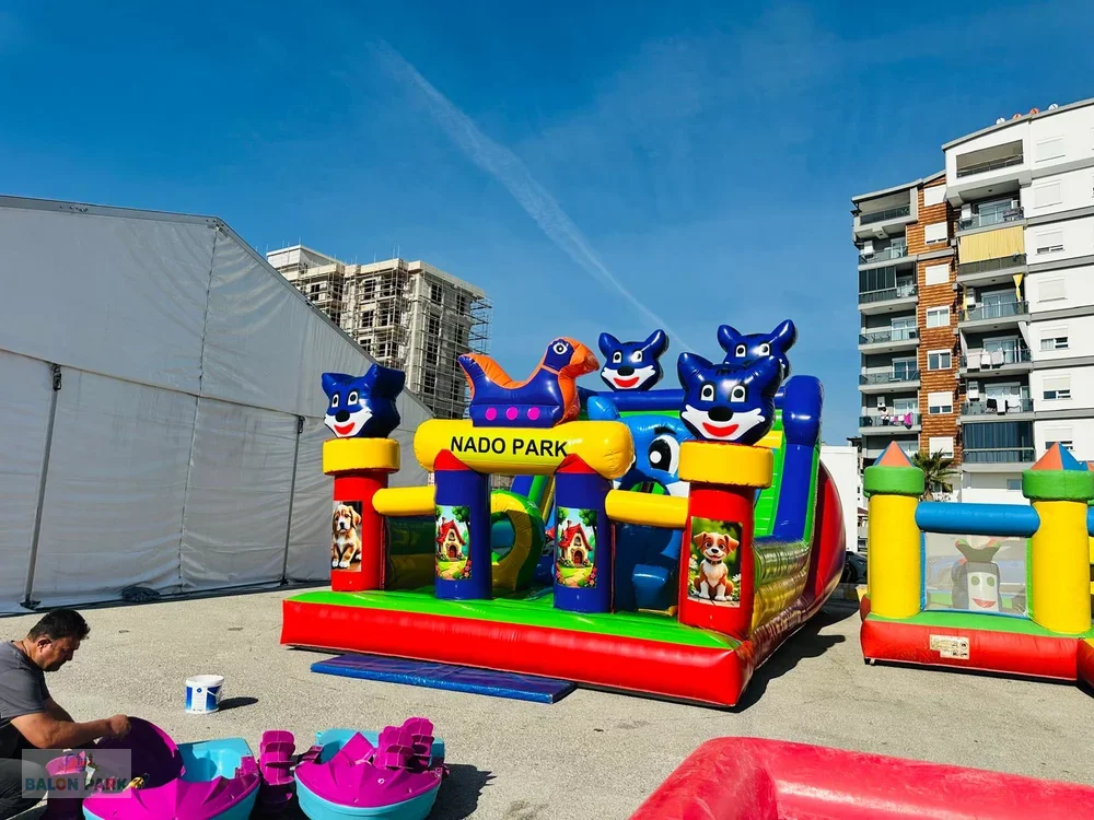 Şişme Oyun Parkı Köpek Balığı 8x5x7 metre ölçülerinde tasarlanmış, dev ve dikkat çekici deniz konseptli profesyonel bir şişme oyun alanıdır. 8 metre uzunluk, 5 metre genişlik ve 7 metre yükseklik ölçüleri sayesinde yüksek kapasite ve maksimum görsel etki sağlar. Üst bölümde yer alan 3D köpek balığı figürü etkinlik alanlarında güçlü bir dikkat çekicilik sunar. İçerisinde geniş zıplama alanı, kaydırak ve engel bölümleri bulunur. Dayanıklı kalın PVC branda malzemeden üretilmiş olup yoğun ticari kullanıma uygundur. Güvenlik fileleri, yüksek bariyerler ve güçlendirilmiş dikiş sistemi ile güvenli ve uzun ömürlü kullanım sağlar. Festival, belediye etkinliği, okul şenliği, AVM organizasyonu ve kiralama firmaları için yüksek kazanç potansiyeline sahip bir modeldir.
