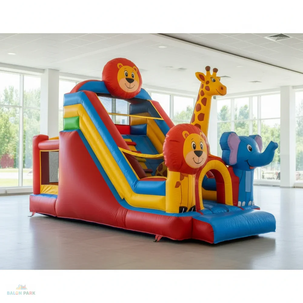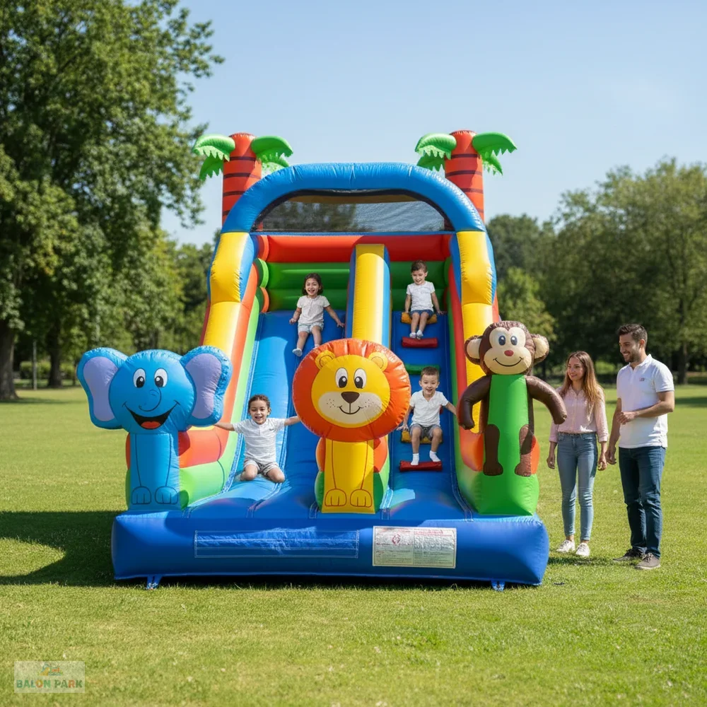 Şişme Figürlü Küçük Kaydırak 5x3,50x5 metre ölçülerinde tasarlanmış, ön kısmında dikkat çekici 3D figür bulunan kompakt ve profesyonel bir şişme oyun ürünüdür. 5 metre uzunluk, 3,50 metre genişlik ve 5 metre yükseklik ölçüleri sayesinde hem açık hem kapalı alan organizasyonlarında rahatlıkla kurulabilir. Üzerindeki figür tasarımı ürüne güçlü bir görsel etki kazandırır ve çocukların ilgisini artırır. Dayanıklı, kalın PVC branda malzemeden üretilmiş olup yoğun ticari kullanıma uygundur. Güvenlik bariyerleri, yan koruma fileleri ve güçlendirilmiş dikiş sistemi sayesinde güvenli ve uzun ömürlü kullanım sunar. Doğum günü organizasyonları, okul etkinlikleri, belediye programları ve kiralama firmaları için ideal ve kazançlı bir modeldir.