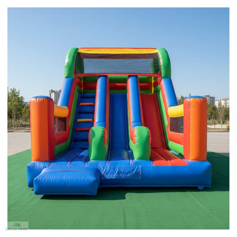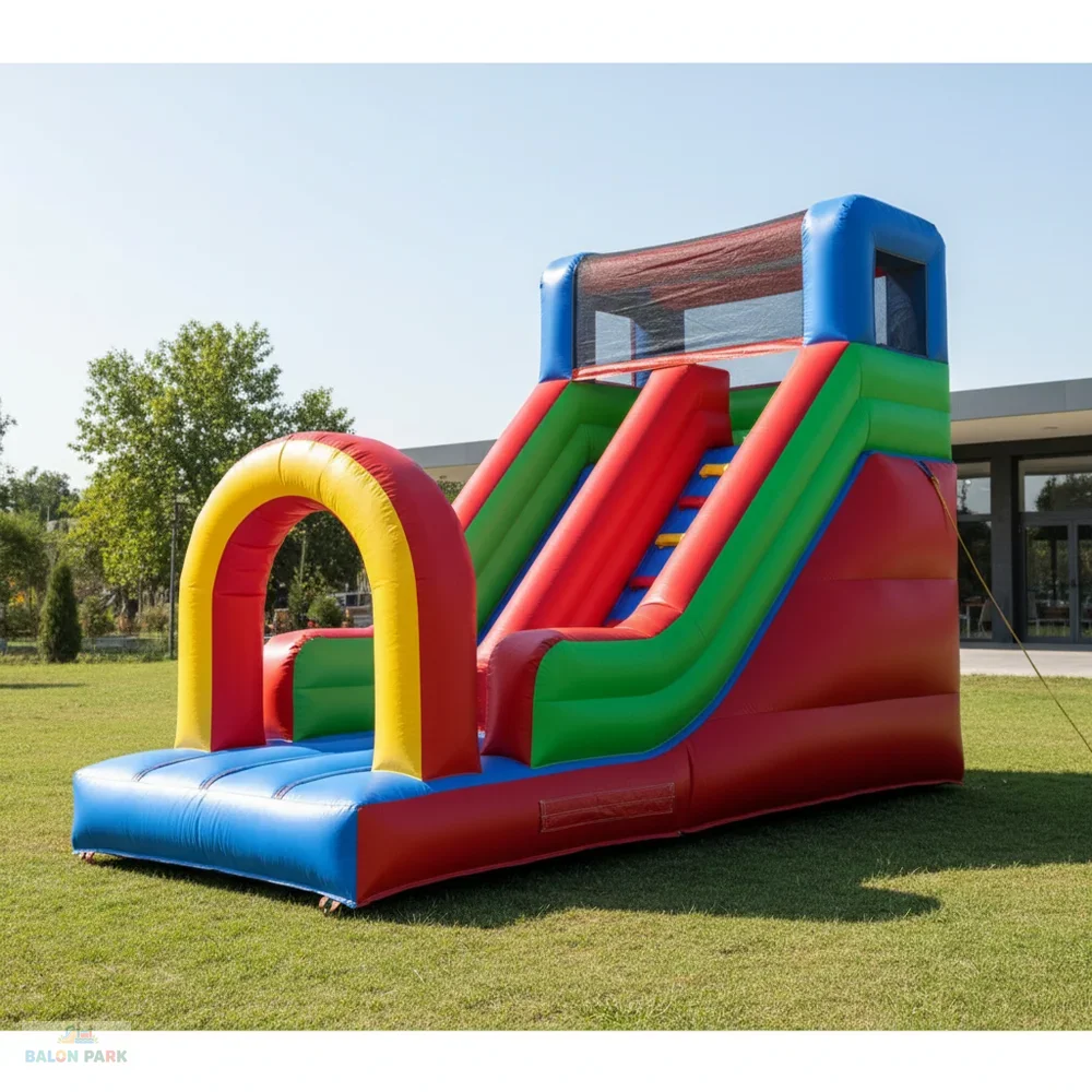 5x3,50x5 metre ölçülerindeki Şişme Küçük Kaydırak, kompakt yapısı sayesinde dar alanlarda kullanım için idealdir. Kaliteli PVC branda, sağlam dikiş sistemi ve güvenli tasarımı ile ticari kullanıma uygundur. Kiralama firmaları ve organizasyon şirketleri için pratik, taşınabilir ve kazançlı bir şişme oyun ürünüdür.