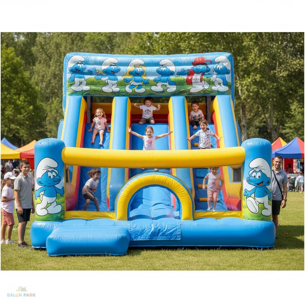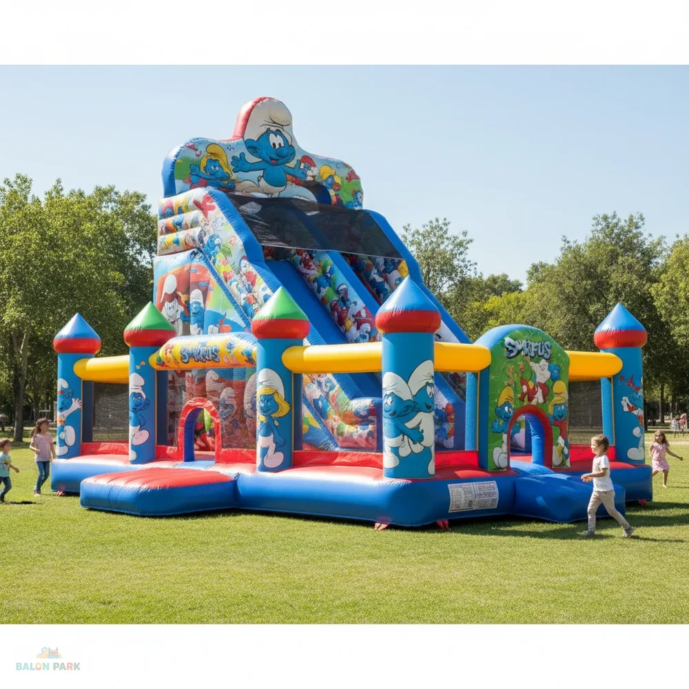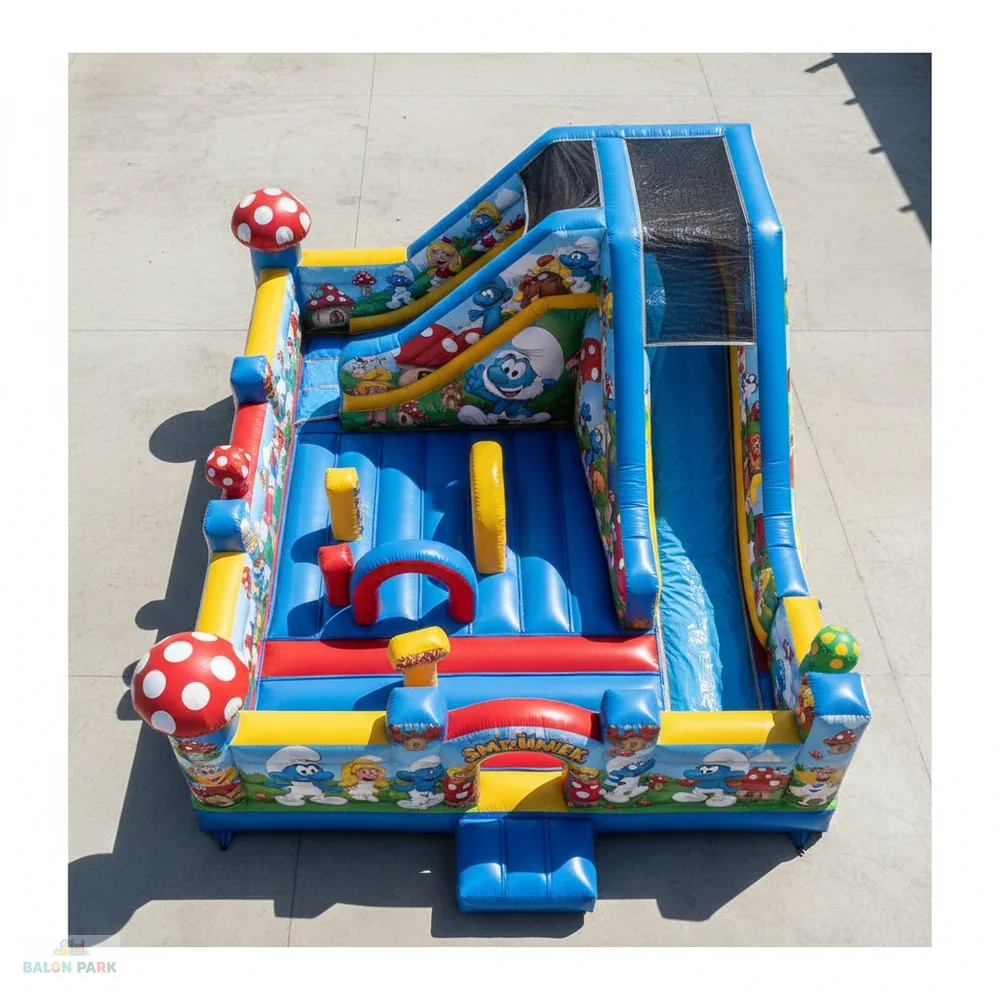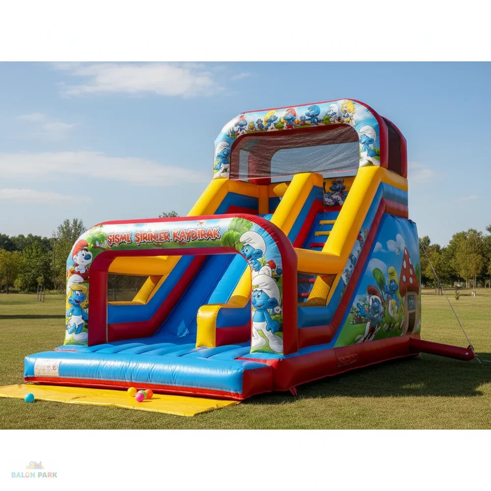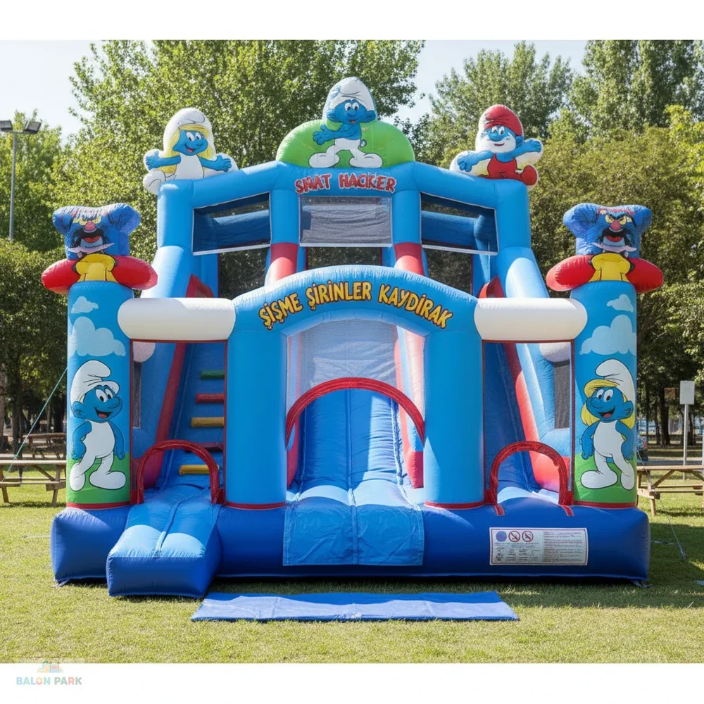 6x4 metre ölçülerindeki şişme Şirinler kaydırak, çocukların severek izlediği Şirinler temasıyla tasarlanmış dikkat çekici ve eğlenceli bir şişme oyun parkıdır. Renkli karakter baskıları ve geniş kaydırak alanı sayesinde doğum günü organizasyonları, okul şenlikleri, AVM etkinlikleri ve açık hava festivallerinde yoğun ilgi görür. Yüksek dayanımlı PVC branda malzemeden üretilmiş olup yan güvenlik fileleri, yüksek bariyerleri ve kaymaz tırmanma alanı ile maksimum güvenlik sağlar. 6x4 metre genişliği sayesinde aynı anda birden fazla çocuğun güvenle eğlenmesine olanak tanır.