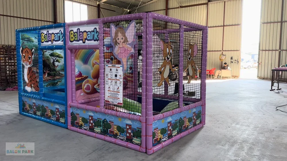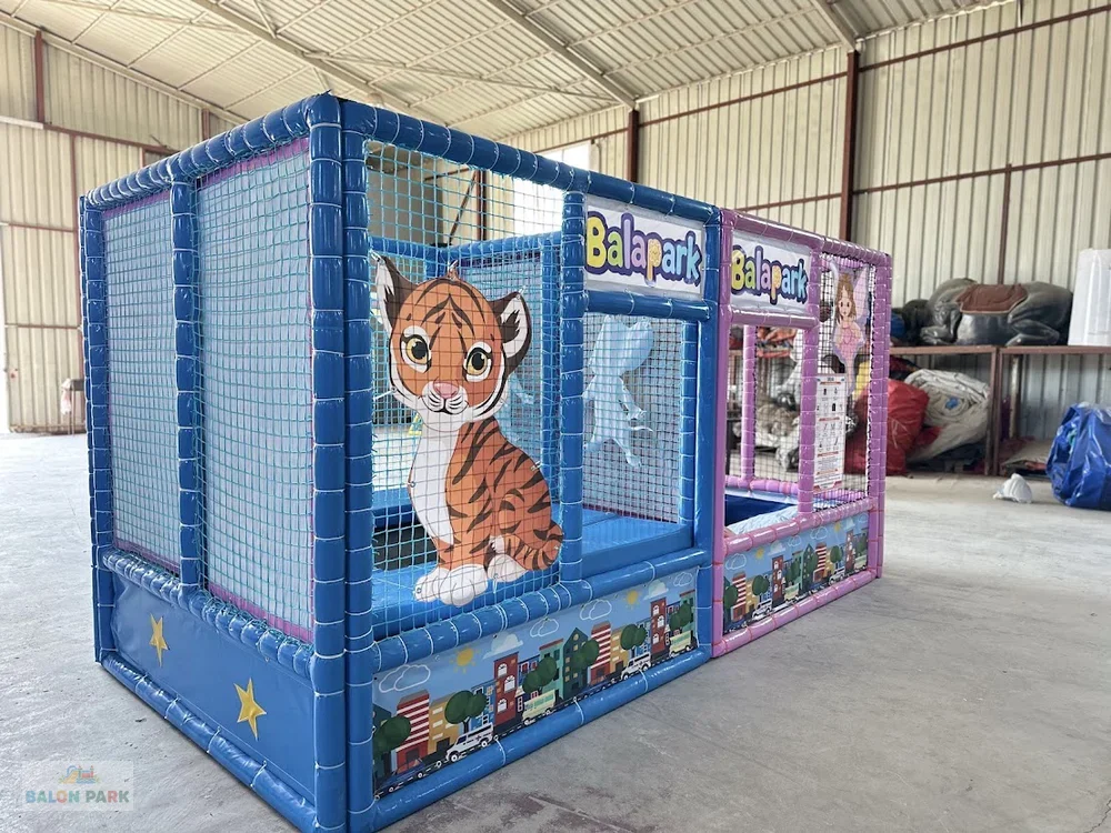 Top havuzlu trambolin 4x2 modeli, zıplama ve top havuzu oyununu bir arada sunan profesyonel bir çocuk eğlence ekipmanıdır. 4x2 metre ölçüsü ile kreşler, oyun alanları, AVM çocuk köşeleri ve organizasyon etkinlikleri için idealdir. Güçlendirilmiş çelik iskelet ve güvenlik fileleri ile maksimum güvenlik sağlarken, alt bölümde yer alan yumuşak toplarla donatılmış havuz çocuklara ekstra eğlence sunar. Dayanıklı PVC malzeme ve yüksek elastikiyetli zıplama zemini sayesinde uzun ömürlü kullanım mümkündür. Kurulumu kolay, taşınabilir ve kompakt yapısı ile hem ticari hem bireysel alanlar için uygundur.