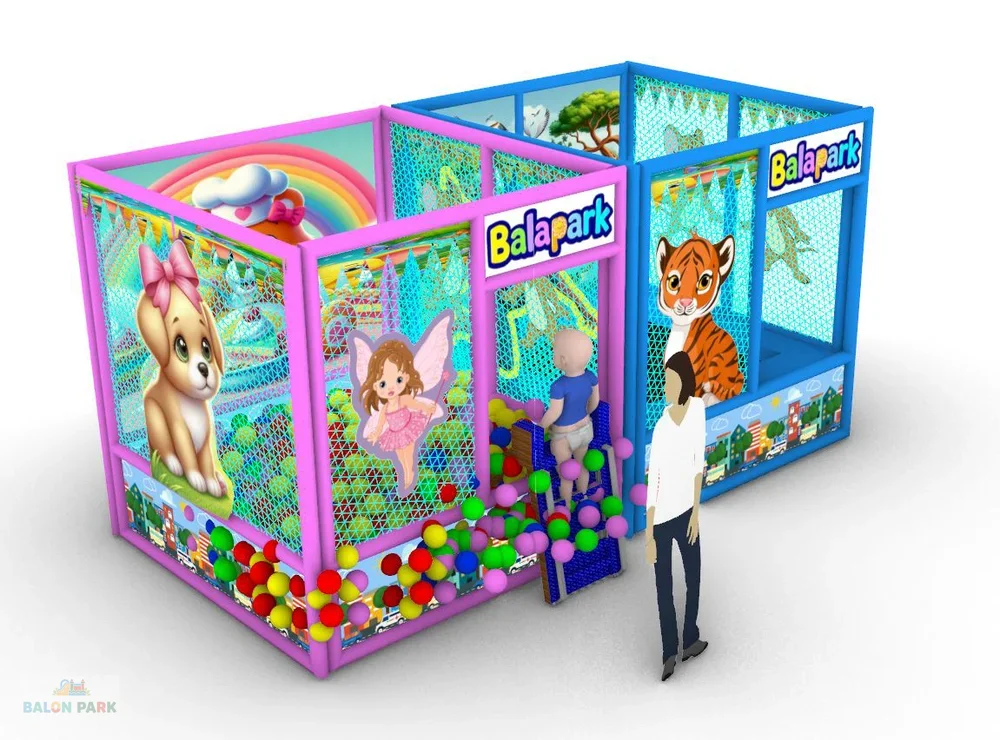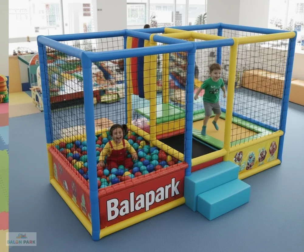 4x2 top havuzlu trambolin; güvenli zıplama alanı ve yumuşak toplu havuzu ile çocuklar için eğlenceli bir kombin oyun alanı sunar. Kreşler, oyun parkları ve organizasyon etkinlikleri için kompakt, dayanıklı ve güvenli bir çözümdür.